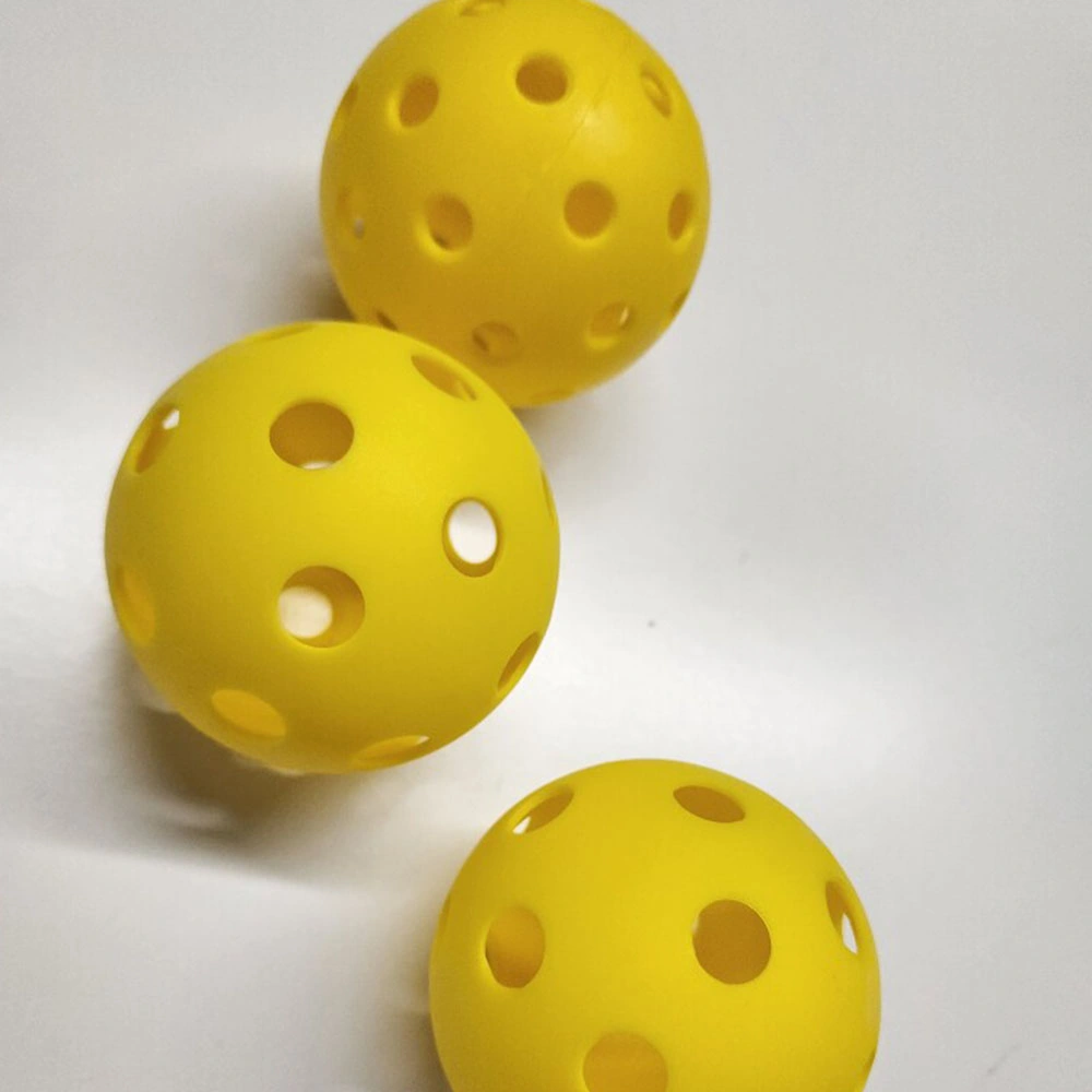 Our40 hole outdoor pickleballs bulksupply utilizes a harder, more durable polyethylene (PE) material blend with UV resistance additives. The smaller, precision-drilled holes ensure a stable flight path in windy conditions. In contrast, our26 hole indoor pickleballs wholesale factoryproducts use a slightly softer TPE material for a truer bounce on smooth gym floors.Material Science: Using Premium PE and TPE for Durability