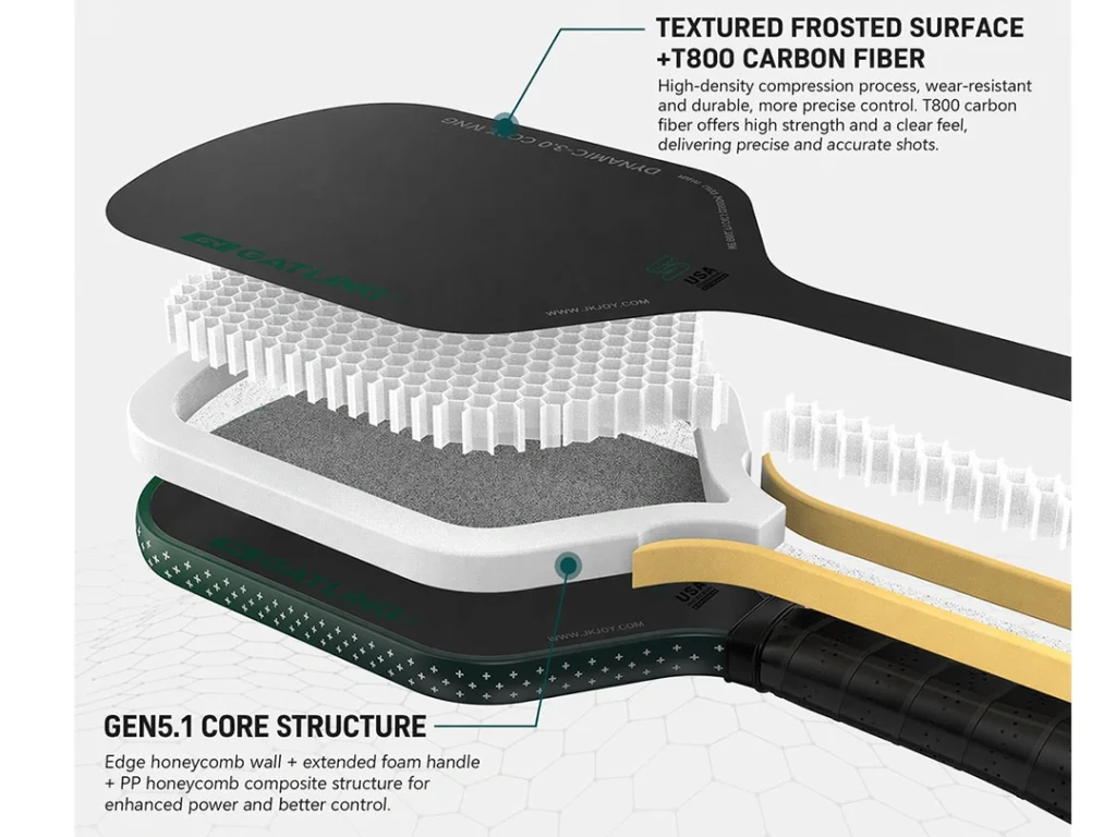 Gen 4 foam core construction replaces the traditional PP honeycomb core entirely with EPP (Expanded Polypropylene) foam. This is not a minor material substitution — it changes the fundamental vibration profile, rebound characteristics, and joint-stress behavior of the paddle.
